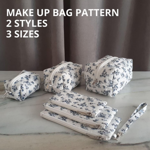 Are you looking for a beginner-friendly sewing pattern that helps you create beautiful quilted makeup bags in multiple sizes? This Makeup Bag Sewing Pattern includes two distinct styles and three sizes each, giving you six total variations to sew. These quilted zipper pouches are perfect for organizing cosmetics, brushes, and travel accessories—and the wrist-strap style can even be used as a small wallet or clutch. Whether you're sewing for yourself, gifting handmade items, or creating products to sell, this pattern set makes it simple and enjoyable.